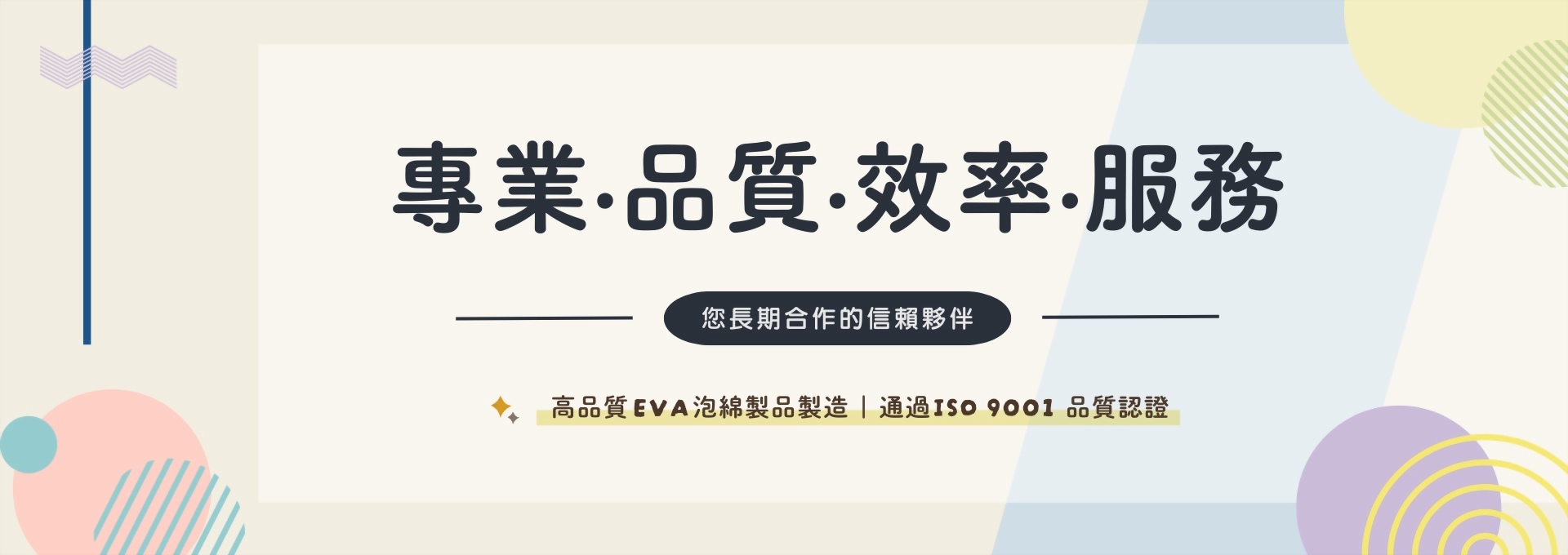 專業 品質 效率 服務 EVA泡綿益智玩具、教具,運動用品,輔具及各類EVA產品專業製造加工 我們專注於EVA泡棉製品之設計、開發與製造,擁有超過30年專業經驗,產品廣泛應用於積木、教育玩具及學習輔具、運動器材、安全地墊與生活用品等領域, 提供客製化OEM/ODM服務,協助客戶打造高品質泡棉解決方案。 豐富的製造加工經驗: 大業泡綿於2001年成立,擁有超過二十多年的經驗,已經成為台灣領先的EVA泡綿玩具、運動用品和各種EVA泡綿產品的製造商。從1992年作為一家較小的 O...